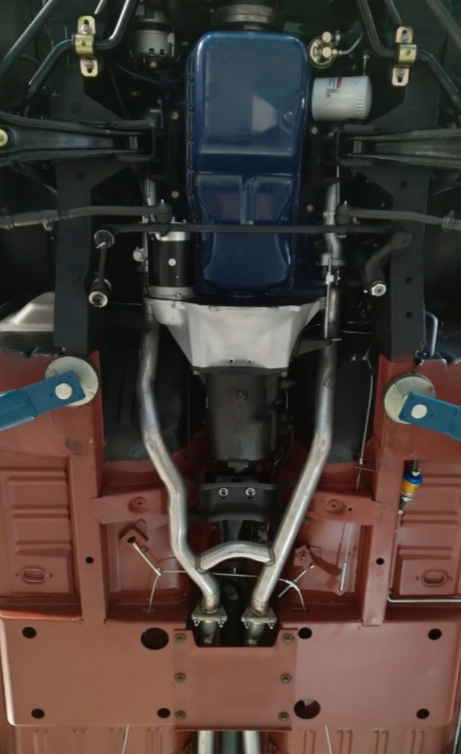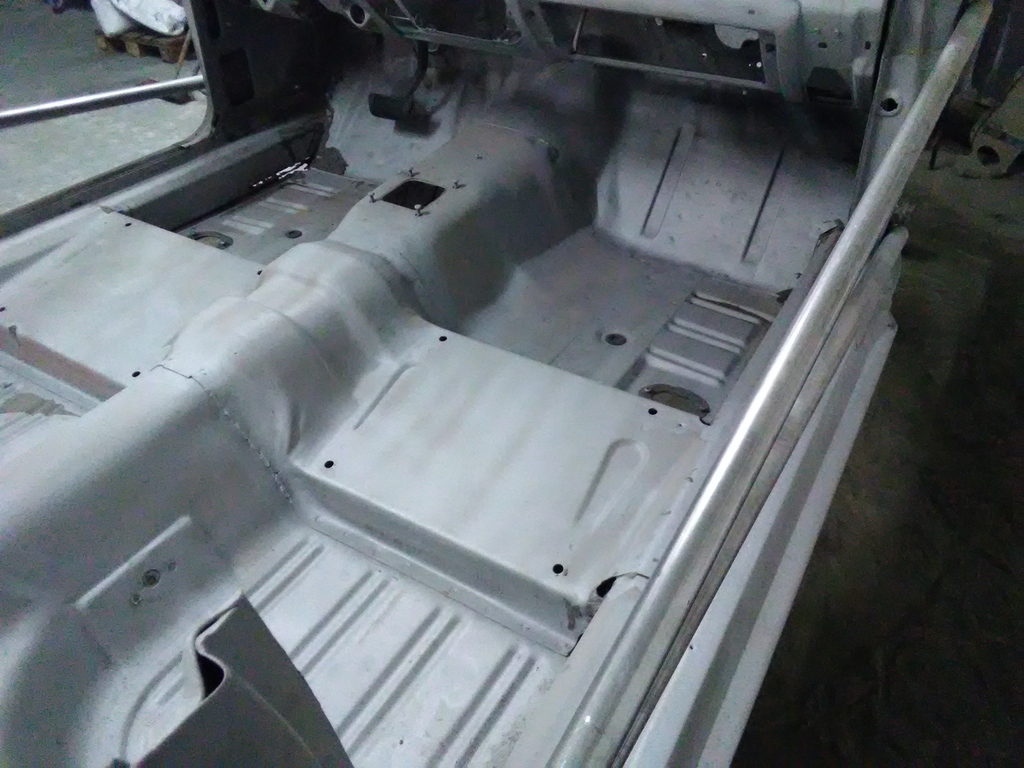 Am Unterboden wurden alle Leitungen für Kraftstoff und Bremsen erneuert, der Unterboden wurde ebenfalls sandgestrahlt und grundiert.