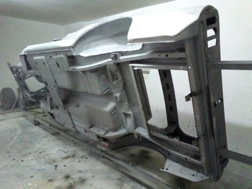 Der Wagen wurde komplett zerlegt, alle Lackschichten inklusive Unterbodenschutz wurden entfernt, der hintere Teil und mittelteil des Wagens waren in gutem Zustand, leider war die Frontpartie etwas mitgenommen, aber natürlich ist ein Wagen dieses Alters nicht ohne Makel.