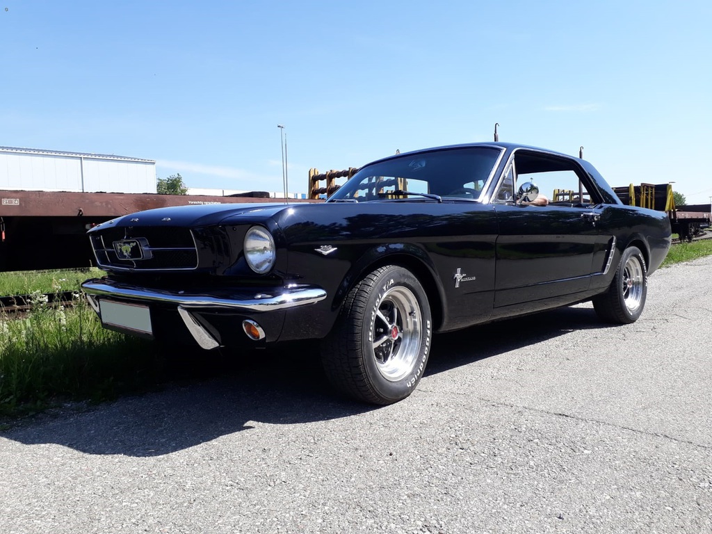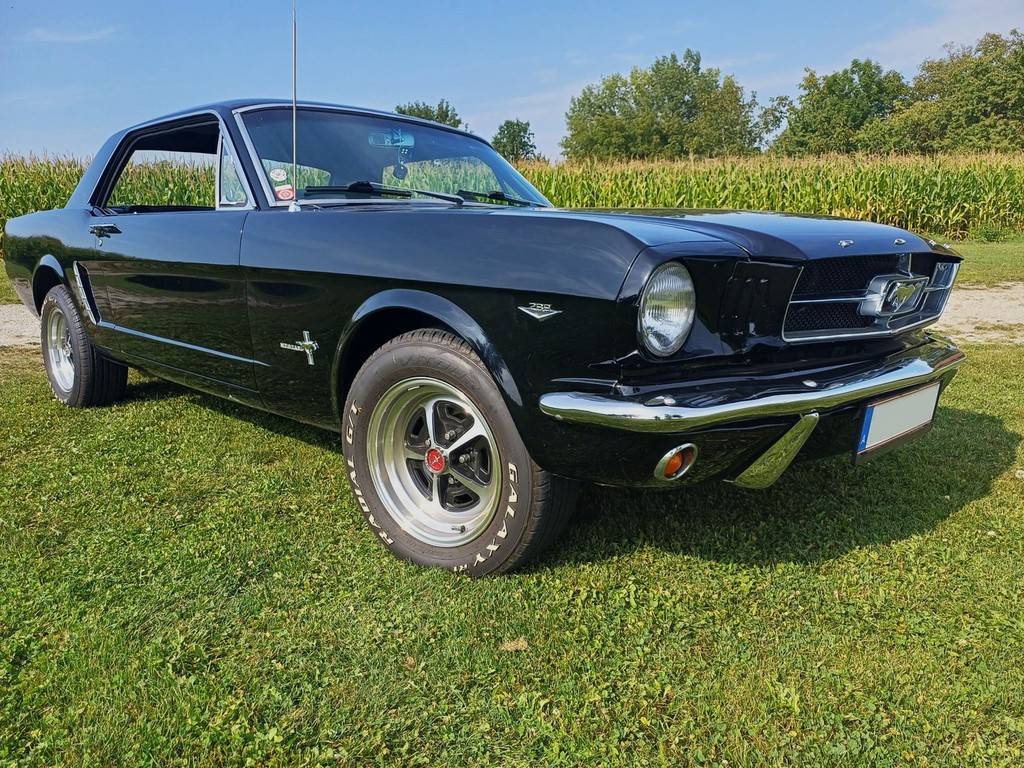 Ein früher Ford Mustang aus dem Jahre 1965 steht im Kundenauftrag zum Verkauf.